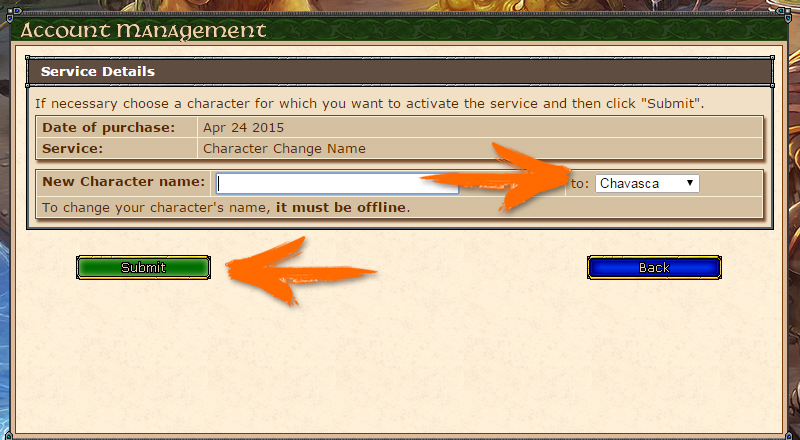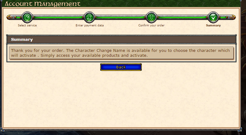 Na próxima página, você verá os dados do produto que adquiriu e a opção de escolher qual personagem receberá o serviço. No caso do nosso exemplo, o serviço é uma mudança de nome; portanto, há um campo para o novo nome e, ao lado, o personagem que receberá o novo nome. Selecionando tudo corretamente, clique em "Ativar". Next, e o serviço foi ativado para o seu personagem. Lembre-se que, no caso de alteração de nome, seu personagem precisa estar desconectado. (Clique na imagem para ampliá-la.)